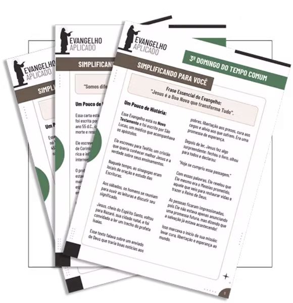 Ele permite que você releia as leituras da missa com explicações claras e simples, sem que você precise ser um especialista em bíblia e interpretar sozinho. Assim, você compreende melhor a Palavra de Deus e consegue aplicá-la de forma natural no seu dia a dia.